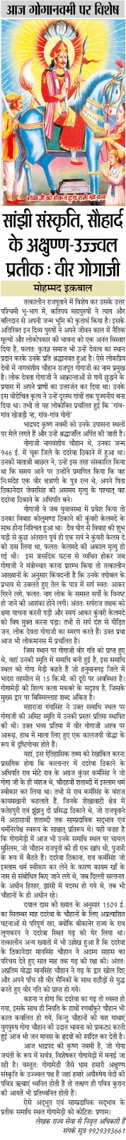 AN ARTICLE BY MY FATHER ABOUT VEER GOGA JI AN EXAMPLE FOR CULTURAL HARMONY